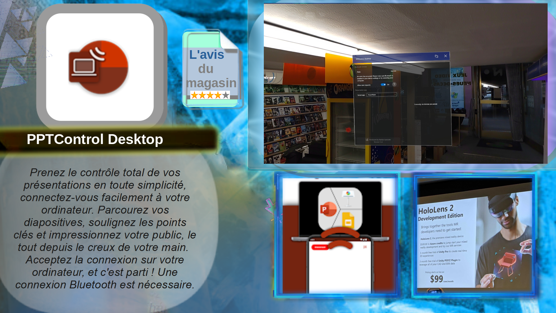 Prenez le contrôle total de vos présentations en toute simplicité, connectez-vous facilement à votre ordinateur. Parcourez vos diapositives, soulignez les points clés et impressionnez votre public, le tout depuis le creux de votre main. Acceptez la connexion sur votre ordinateur, et c'est parti ! Une connexion Bluetooth est nécessaire.