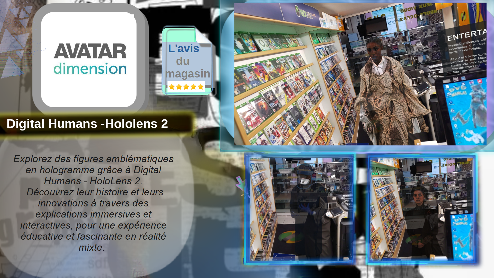 Explorez des figures emblématiques en hologramme grâce à Digital Humans - HoloLens 2. Découvrez leur histoire et leurs innovations à travers des explications immersives et interactives, pour une expérience éducative et fascinante en réalité mixte.