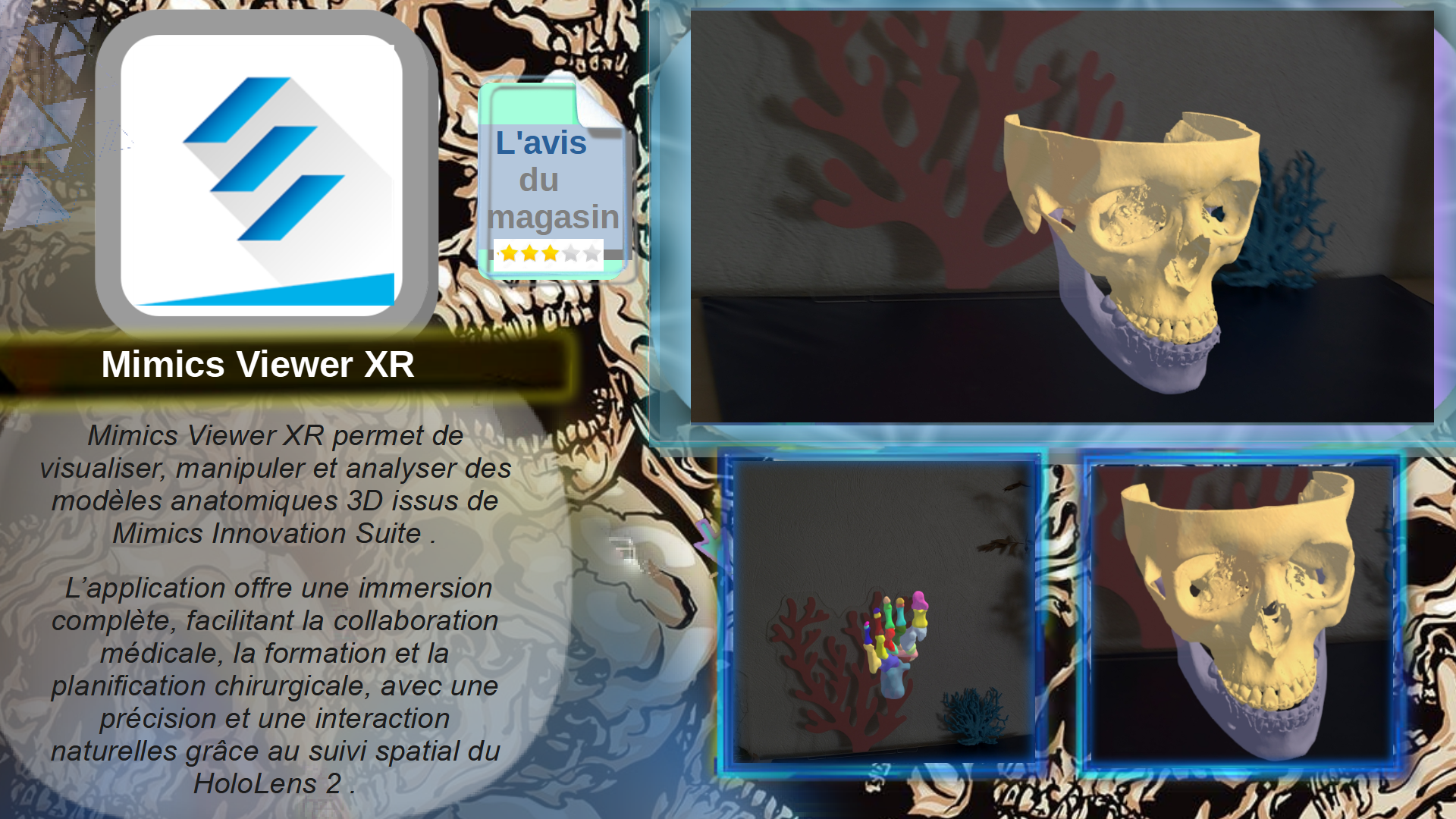 Mimics Viewer XR permet de visualiser, manipuler et analyser des modèles anatomiques 3D issus de Mimics Innovation Suite .